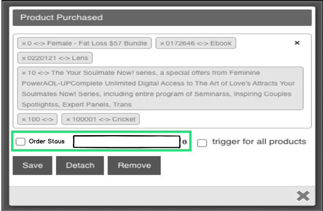 On the Product Purchase dialog box, you will notice the new 'Order Status' filter as a text field along with a checkbox. To filter the contacts based on a specific order status, select the checkbox, and then enter the specific order status in the text box.