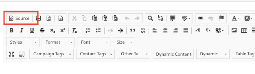 Once in the builder, click ‘Source’ and paste the HTML as plain text, then click "Source" again.